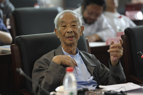 ▲ 发布会上,87岁高龄的汤一介用20分钟的发言回顾自己至今的哲学研究之路。三十年不断的思索,使其成为海内外公认的中国哲学史大家。